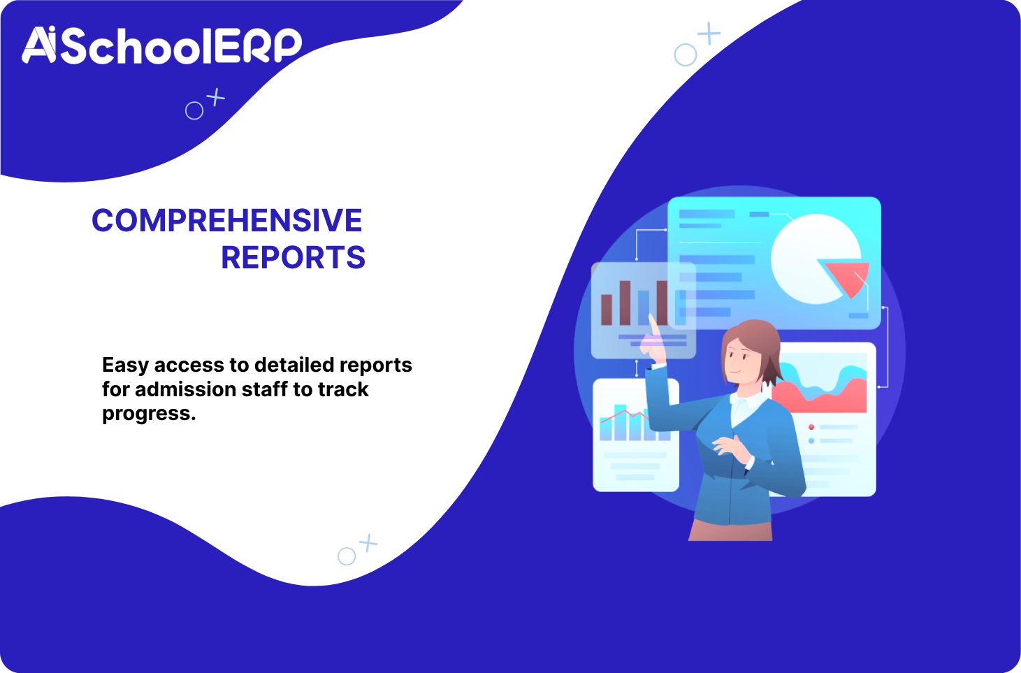 Easy access to detailed reports for admission staff to track progress.